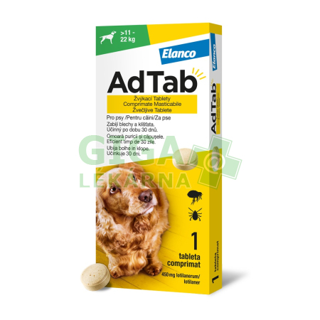 | Oficiální název: | AdTab 450mg žvýkací tablety pro psy >11-22kg 1ks |