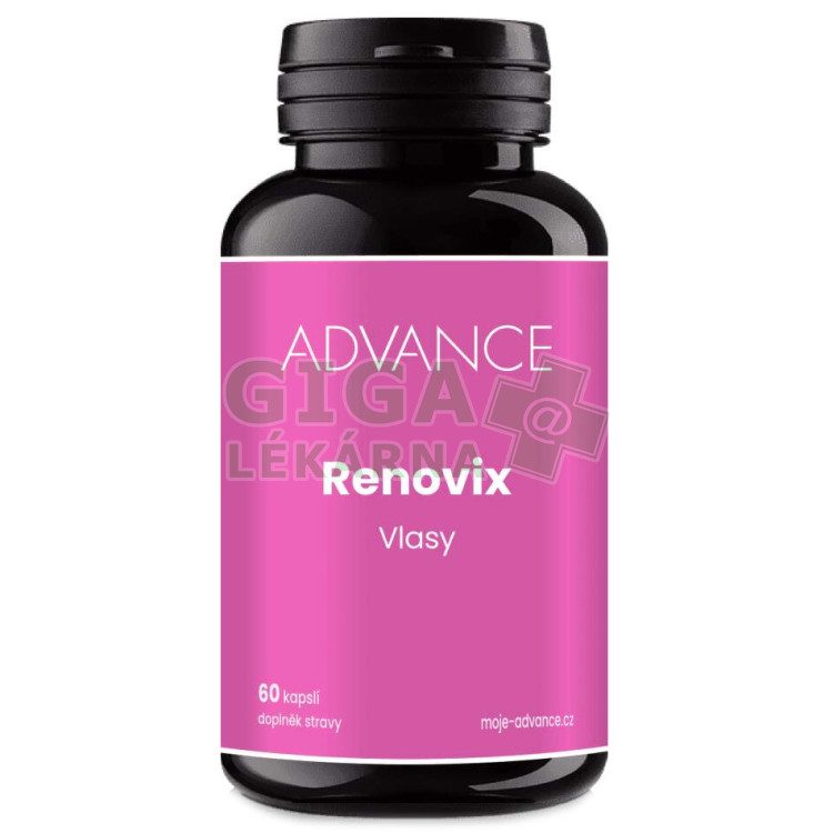 | Upozornění: | Přípravek ADVANCE Renovix Vlasy cps.60 je registrovaný jako doplněk stravy. Nemá schválené léčivé účinky a nejedná se o lék. Doplňky stravy nejsou určeny jako náhrada pestré stravy. Nepřekračujte doporučené dávkování. |