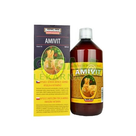 Dávkování Amivit králíci solPodává se v množství 10 ml na 1 litr napájecí vody po celý rok. Přípravek lze kombinovat a současně podávat s jakýmkoliv výrobkem značky BENEFEED pro konkrétní kategorii zvířat. SloženíVitaminy, aminokyseliny, přírodní látky, upravená pitná voda. Balení Amivit králíci solBalení obsahuje 1 litr. |