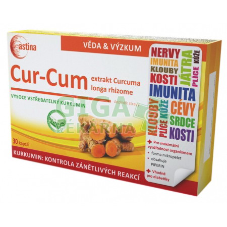 | Upozornění: | Přípravek Astina Cur-Cum 30 kapslí je registrovaný jako doplněk stravy. Nemá schválené léčivé účinky a nejedná se o lék. Doplňky stravy nejsou určeny jako náhrada pestré stravy. Nepřekračujte doporučené dávkování. |