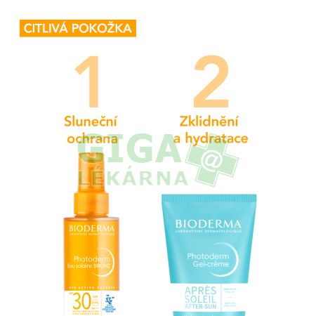 PoužitíDOBŘE PROTŘEPEJTE, dokud nezískáte homogenní složení. Aplikujte rovnoměrně a v dostatečném množství před pobytem na slunci (snížené množství přípravku snižuje výši solární ochrany). Pro zachování ochrany aplikujte znovu po pocení, plavání nebo osušení ručníkem. Před aplikací na obličej nastříkejte do rukou. Typ pokožkyVšechny typy pleti, citlivá. Složení BIODERMA Photoderm BRONZ Opalovací voda SPF30 200mlAQUA/WATER/EAU, DICAPRYLYL CARBONATE, DICAPRYLYL ETHER, DIETHYLAMINO HYDROXYBENZOYL HEXYL BENZOATE, DIISOPROPYL SEBACATE, DIBUTYL ADIPATE, ETHYLHEXYL SALICYLATE, ETHYLHEXYL TRIAZONE, UNDECANE, GLYCERIN, BIS-ETHYLHEXYLOXYPHENOL METHOXYPHENYL TRIAZINE, BRASSICA CAMPESTRIS/ALEURITES FORDII OIL COPOLYMER, TRIDECANE, 1,2-HEXANEDIOL, PENTYLENE GLYCOL, FRAGRANCE (PARFUM), CAPRYLIC/CAPRIC TRIGLYCERIDE, ACETYL TYROSINE, SODIUM CHLORIDE, SODIUM CITRATE, ECTOIN, MANNITOL, XYLITOL, RHAMNOSE, SODIUM HYDROXIDE, TOCOPHEROL, BIXA ORELLANA SEED EXTRACT, COPPER GLUCONATE, FRUCTOOLIGOSACCHARIDES, HELIANTHUS ANNUUS (SUNFLOWER) SEED OIL, ACETYL HEXAPEPTIDE-1, DEXTRAN. [BI2072]. UpozorněníVyhněte se přímému kontaktu produktu s oblečením. Pro dospělé. Nezůstávejte příliš dlouho na slunci, nadměrné vystavování se slunci je nebezpečné. Nevhodné pro těhotné a kojící ženy.