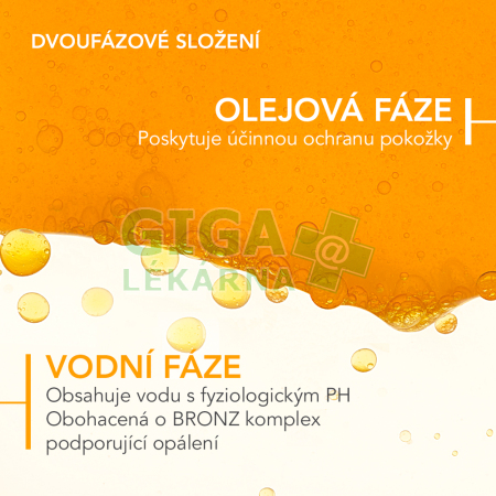 Bioderma Photoderm BRONZ Opalovací voda SPF 30 je ultra-lehká hydratační voda, která pokožku chrání před UV zářením. Díky dvoufázovému složení poskytuje pokožce nejen vysokou ochranu, ale zabezpečuje i potřebnou hydrataci. BRONZ KOMPLEX biologicky stimuluje přirozený proces opalování, takže vaše pokožka získá krásné opálení snadno a na delší dobu. Benefity: