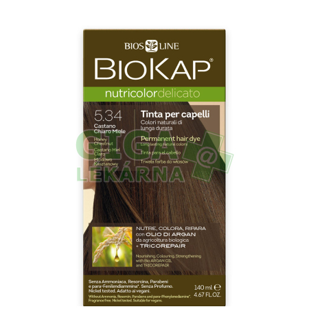 | Oficiální název: | BIOKAP Barva na vlasy 5.34 Medová kaštanová 140ml |