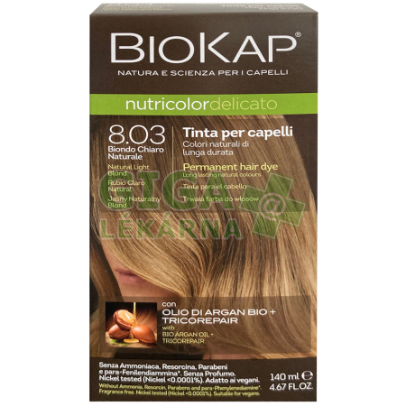 | Oficiální název: | BIOKAP Barva na vlasy 8.03 Blond přír.světlá 140ml |
