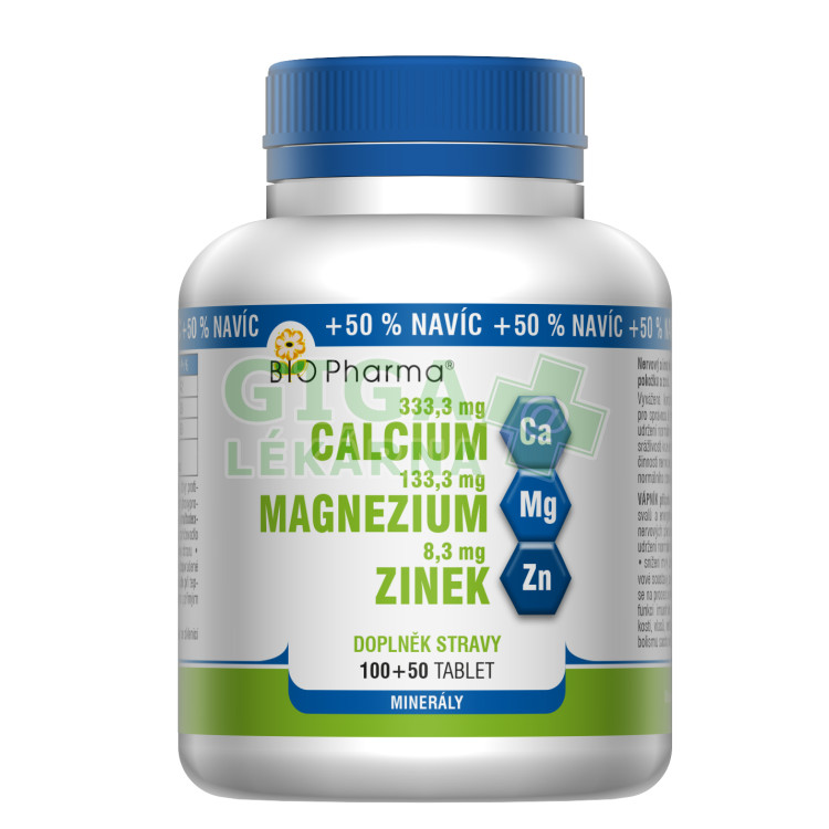 | Popis: | Popis BIO-Pharma Calcium Magnezium Zinek 150 tbl.Calcium 333,3 mg Magnezium 133,3 mg Zinek 8,3 mg 100+50 tablet doplněk stravy.