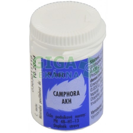 | Upozornění: | Přípravek Camphora AKH - 60 tablet je registrovaný jako doplněk stravy. Nemá schválené léčivé účinky a nejedná se o lék. Doplňky stravy nejsou určeny jako náhrada pestré stravy. Nepřekračujte doporučené dávkování. |