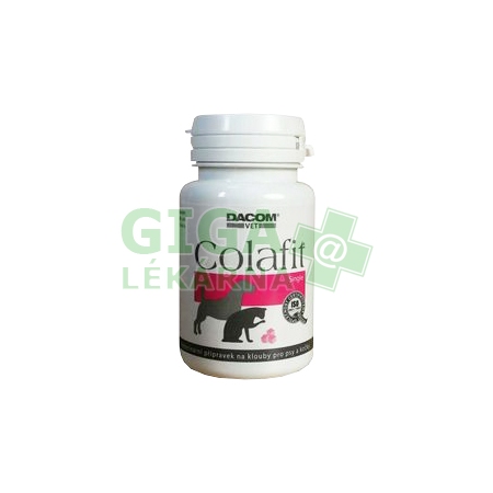Způsob užíváníPodávejte 1 x denně, nejlépe ráno na lačno, samostatně do dutiny ústní nebo s kouskem potravy. Optimální délka podávání jsou 3 měsíce, 2x ročně opakovat. Delší podávání po konzultaci s veterinárním lékařem. Přípravek lze podávat současně s krmivy, které obsahují chondroprotektivní látky. Pozitivní účinek se ještě zvýší. Balení Colafit DOG and CAT50 kostiček |