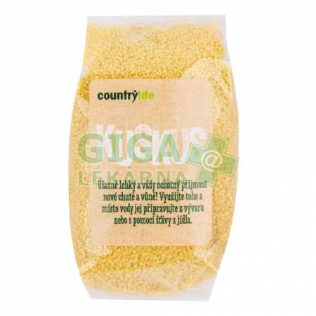 Návod k přípravěBěžný kuskus se nemusí vařit, stačí zalít jej dvojnásobným množstvím vody a nechat pod pokličkou 10 minut dojít, mezitím párkrát vidličkou prokypřit. Složení Country Life Kuskus 500 gPŠENIČNÁ krupice.