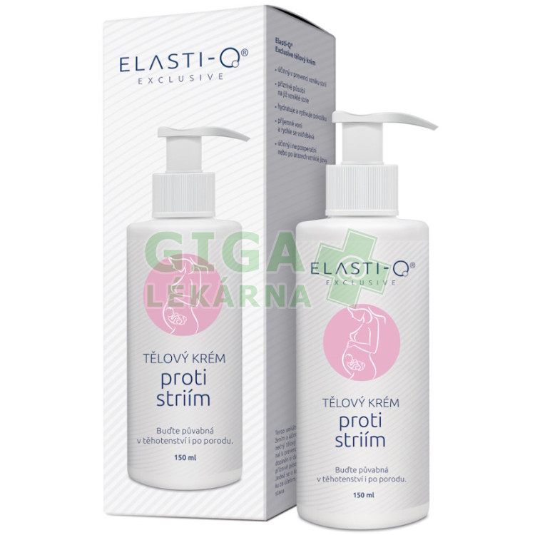 Elasti-Q Exclusive tělový krém - Tento unikátní přípravek svým složením a účinností navazuje na jedinečný tělový krém Elasti-Q Original k prevenci strií. Navíc je doplněn o další účinné látky, které příznivě působí na již vzniklé strie. Jedná se o krém určený na pokožku za účelem její ochrany a zlepšení stavu.