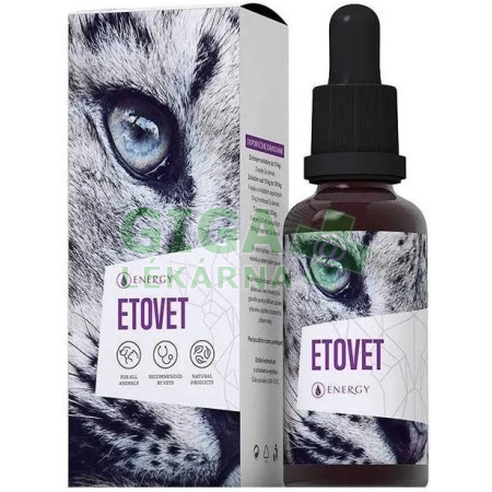 Po 3 týdnech užívání následuje jeden týden pauza. Doporučení veterinářeEtovet používám při poruchách chování u koček a psů. Při epileptiformních křečích a neklidu v kombinaci s Fytovetem. Při léčbě hypotyreózy v kombinaci s klasickou medikací, Gynevetem a Fytovetem. Dobrých výsledků dosahujeme také u falešné březosti fen. Efekt se dostaví i při léčbě papoušků, u kterých velmi často vzniká syndrom vyškubávání peří. MVDr. Lucie Miková. Složení Energy Etovet 30mlBylinný extrakt 82,6 % (Sedum roseum, Artemisia pontica, Ginkgo biloba, Origanum vulgare, Aralia mandshurica, Foeniculum vulgare, Scutellaria baicalensis, Acorus calamus, Leuzea carthamoides, Schisandra chinensis, Cinnamomum zeylanicum), sorbitol – zahušťovadlo, mikrokrystalická celulóza – zahušťovadlo, voda, xanthan – zahušťovadlo, grapefruitový extrakt – konzervant, sorbát draselný – konzervant, směs silic 0,12 %, bioinformace pro Etovet. UpozorněníEtovet není vhodný pro gravidní samice. Nepodávejte Etovet při pokročilém zánětu plic (při kašli) a těžkém zánětu tlustého střeva a kůže. Doporučujeme spotřebovat do tří měsíců po otevření. Výrobek je nutno skladovat v suchu a temnu, uchovávat při teplotě 10 - 25 °C a chránit před mrazem. Neuchovávejte v chladničce! Hrozí kondenzace vzdušné vlhkosti. Minimální trvanlivost do data uvedeného na obalu krabičky a na etiketě. Ukládejte mimo dosah dětí! Balení Energy EtovetBalení obsahuje 30 ml kapek Etovetu Energy. |