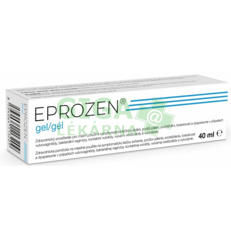 | Popis: | CharakteristikaEPROZEN gel. Zdravotnický prostředek pro místní použití k symptomatické léčbě svědění, pocitu pálení, podráždění, bolestivosti a dyspareunie v případech vulvovaginity, bakteriální vaginózy, kontaktní vulvitidy, vulvární vestibulitidy a vulvodynie. Gel zabraňuje nástupu tkáňových změn (erytém, edém, apod.).