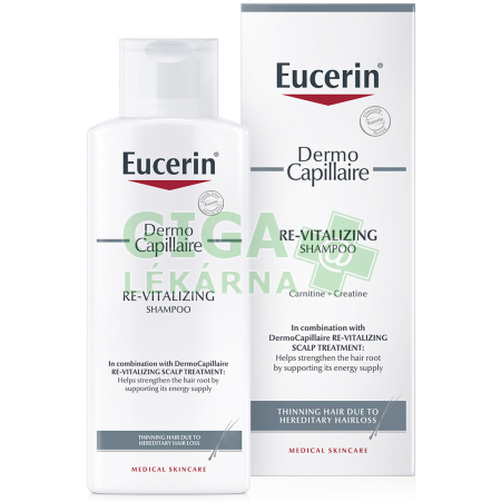 Používejte společně s Eucerin DermoCapillaire Tonikem proti vypadávání vlasů. Složení pomáhá vytvářet více buněčné energie podporující tvorbu vlasových vláken: karnitin zvyšuje produkci energie v buňkách, zatímco keratin umožňuje tuto energii uchovat a transportovat dále. VýsledekOmezení slábnutí vlasů. Vlasová pokožka i vlasy jsou šetrně očištěny. PoužitíVmasírujte do mokrých vlasů a nechte chvíli působit. Důkladně opláchněte. Je vhodný i pro každodenní použití. Pro zvýšení účinku použijte také Eucerin DermoCapillaire Tonikum proti vypadávání vlasů.