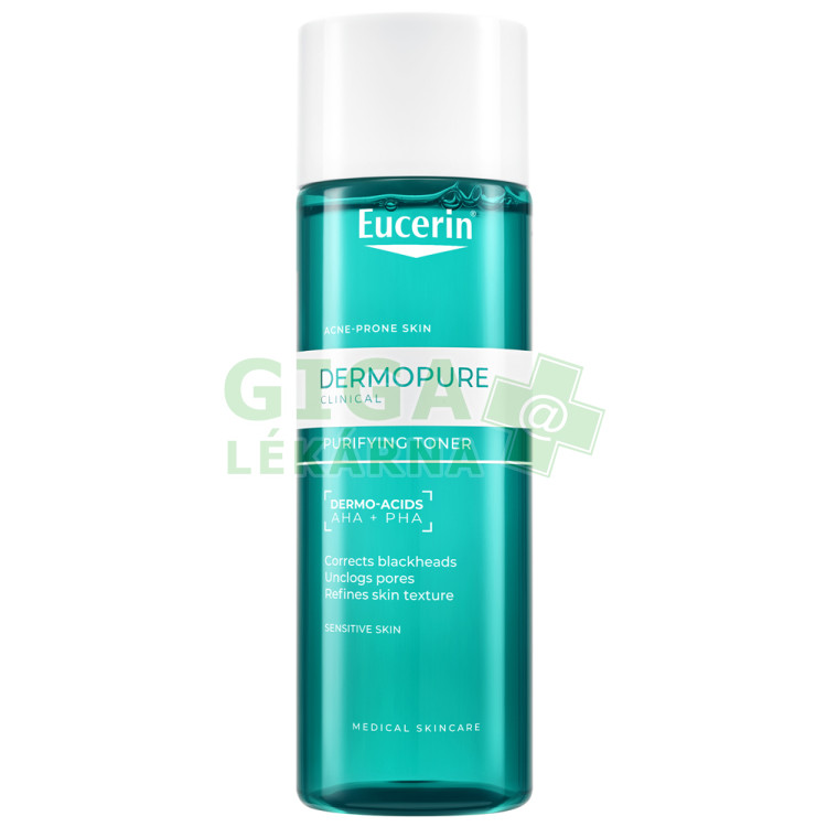 Klinicky prokázáno: složení cílené na kožní mikrobiom chrání před tvorbou přebytečného kožního mazu, redukuje rozšířené póry a černé tečky. Účinnost od 1. dne používání. Vhodný od 12 let pro všechny fototypy pleti. Vhodné proCitlivá pokožka. FototypyVše. VěkOd 12 let. PoužitíPoužívejte ráno a večer po vyčištění pleti Hloubkově čisticím gelem. Tonikum aplikujte na suchou pleť pomocí odličovacího tamponu a následně použijte péči z řady DermoPure CLINICAL. Zabraňte styku s očima. Složení Eucerin DermoPure CLINICAL čisticí tonikum 200mlAqua, Alcohol Denat., Glycerin, Gluconolactone, Glycolic Acid, Lactic Acid, Propylene Glycol, Cellulose Gum, Sodium Hydroxide, 1,2-Hexanediol, Phenoxyethanol, Trisodium EDTA.