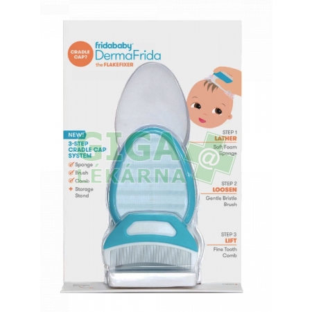 Balení Fridababy DermaFrida FlakeFixerBalení obsahuje hustý hřebínek se stojánkem. |