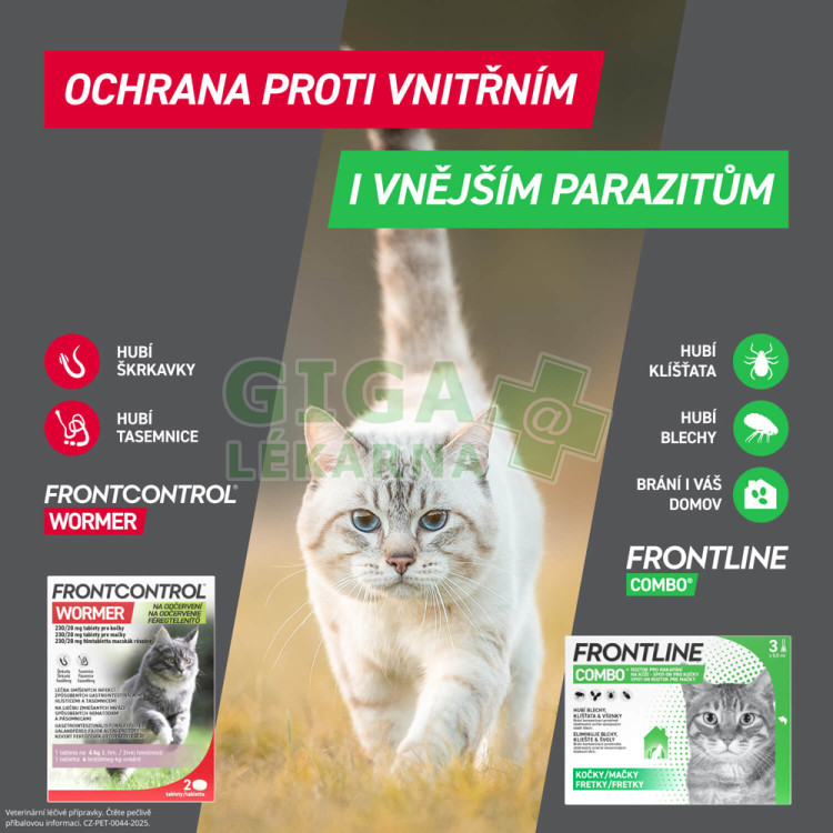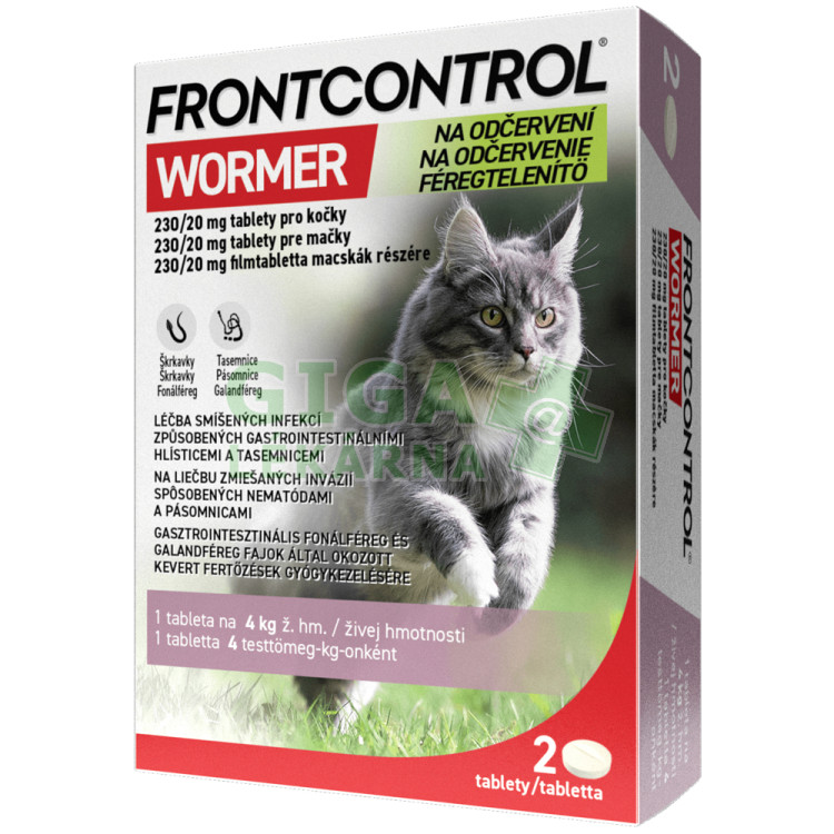 | Oficiální název: | Frontcontrol Wormer 230/20mg pro kočky tbl.2 |