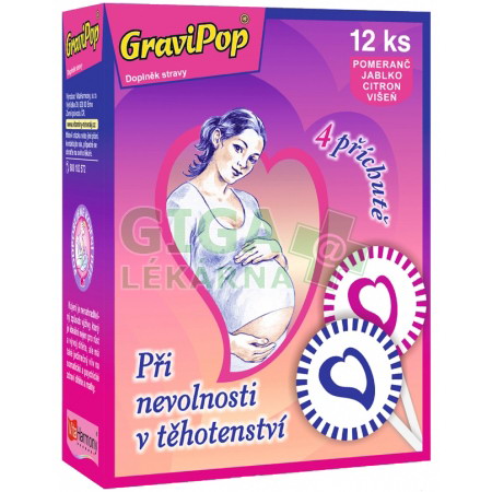 | Upozornění: | Přípravek GraviPop lízátka na nevolnost v těhotenství 12ks je registrovaný jako doplněk stravy. Nemá schválené léčivé účinky a nejedná se o lék. Doplňky stravy nejsou určeny jako náhrada pestré stravy. Nepřekračujte doporučené dávkování. |