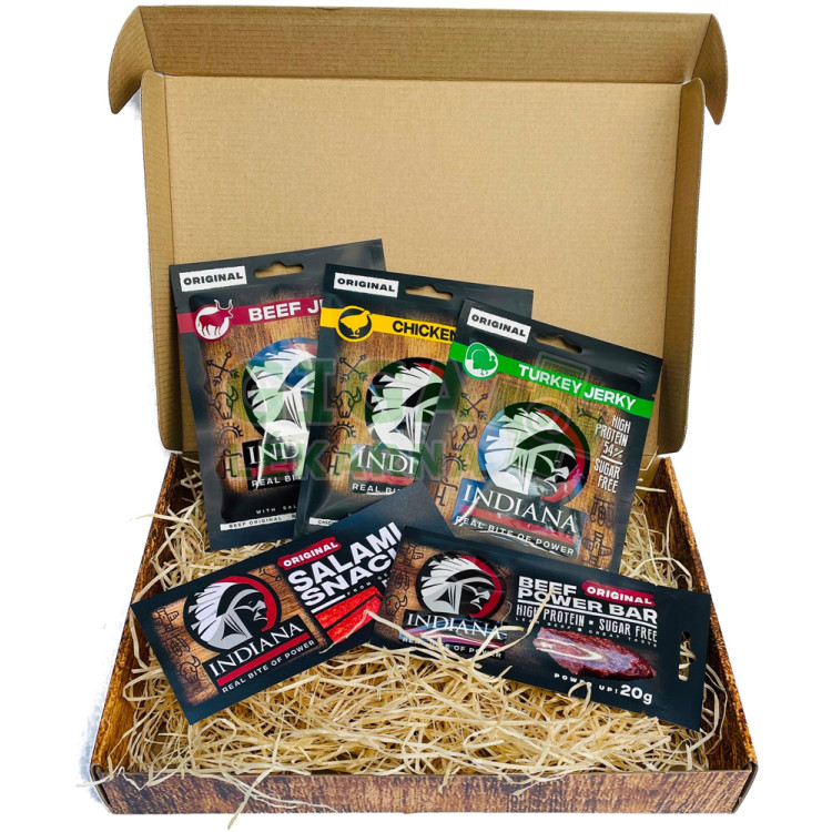 Sušené maso INDIANA Jerky v dárkovém setu je kombinace chutných masový snacků, které uvítáte převážně na cestách nebo při sportování. Každé balení pochoutky Jerky je plné hodnotných bílkovin, dokáže tak rychle doplnit energii například při horských pochodech nebo cyklovýletech. Výrobce Jerky vybírá jen to nejkvalitnější maso, navíc jsou produkty Jerky bez lepku i bez přidaných glutamátů. Obsah baleníINDIANA Jerky krůtí Original 25g Sušené krůtí maso zauzené.
