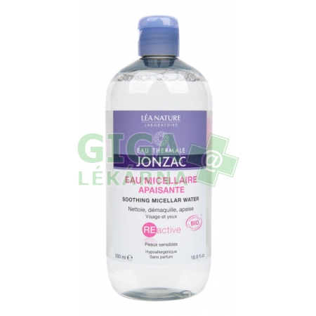 * Složky z organického zemědělství. Balení Jonzac Reactive Micelární voda citl.pleťBalení obsahuje 500 ml micelární vody na citlivou pleť se sklonem k zčervenání. |