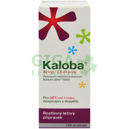 Kaloba 20 mg / 7,5 ml sirup je rostlinný léčivý přípravek (fytofarmakum), jehož léčivou látkou je vysušený extrakt z kořene rostliny Pelargonium sidoides (EPs 7630).