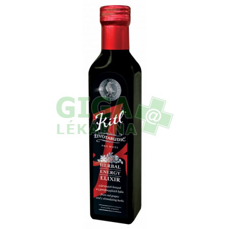 | Popis: | Popis Kitl Životabudič pro muže 250mlKitl Životabudič pro muže - Sirup vyrobený z červené zahuštěné hroznové šťávy a 5 bylin, s dvojnásobnou dávkou kotvičníku zemního. Obsahuje přírodní kofein z bylin (110mg v jedné dávce 40 ml). Neobsahuje řepný cukr. Doplněk stravy. S vysokým obsahem přírodního kofeinu. Informace pro diabetikyVýrobek je možné v omezeném množství a po konzultaci s lékařem užívat diabetiky 1. i 2. typu, musí se ale započítat do denního příjmu energie. Složení Kitl Životabudič pro muže 250mlZahuštěná hroznová šťáva, výtažky z bylin (obsah 635 mg ve 40 ml: rozchodnice růžová, paulínie nápojná, sibiřský ženšen, jahodník lesní, kotvičník zemní), přírodní aroma, konzervant: sorbát draselný, přírodní kofein z kávovníku. UpozorněníNení určeno dětem, těhotným a kojícím ženám. Neužívejte před spaním. Uchovejte mimo dosah dětí. Užíváte-li léky nebo jste nemocní, poraďte se s lékařem. Nekombinujte s alkoholem. Nepřekračujte doporučenou dávku.