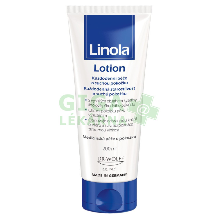 Linola Lotion má vynikající snášenlivost a je vhodná ke každodenní péči o všechny typy suché pokožky, včetně ekzematické pokožky a lupénky. PoužitíLinola Lotion je určena speciálně ke každodenní péči o suchou a citlivou pokožku včetně ekzematické pokožky a lupénky. Linola lotion proniká rychle do pokožky, nezanechává mastný film. Ideální použití i na ruce a velké plochy těla. VýsledekEmulze obnovuje ochrannou kožní bariéru, zabraňuje dalšímu vysychání a normalizuje obsah mastných kyselin a vody v pokožce. Složení Linola Lotion 200mlAqua, Decyl Oleate, Isopropyl Myristate, Hexyldecanol, Hexyldecyl Laurate, Polyglyceryl-2 Dipolyhydroxystearate, PEG-7 Hydrogenated Castor Oil, Carthamus Tinctorius Seed Oil, Glycerin, Cera Microcristallina, Zinc Stearate, Phenoxyethanol, Parfum, Magnesium Sulfate, Benzyl Salicylate, Tocopherol, Helianthus Annuus Seed Oil, Alpha-Isomethyl Ionone, Linalool, Citronellol, Hexyl Cinnamal, Hydrogenated Palm Glycerides Citrate. Balení Linola Lotion200 ml |