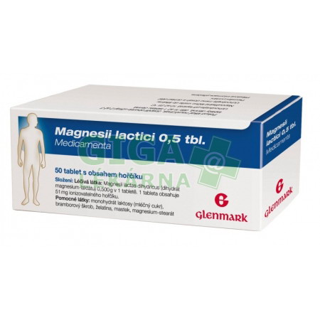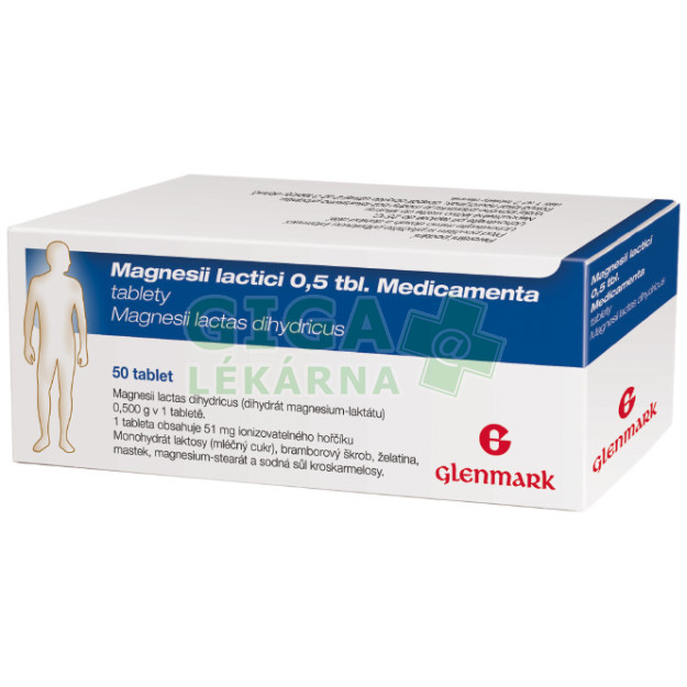 | Oficiální název: | Magnesii Lactici 0.5 tbl.MVM por.tbl.nob.50x0.5g |