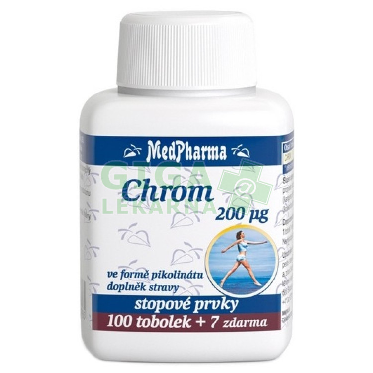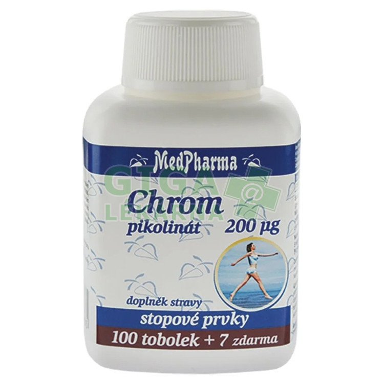* referenční hodnota příjmu UpozorněníNení určeno dětem. Ukládejte mimo dosah dětí! Balení MedPharma Chrom pikolinát107 tobolek |