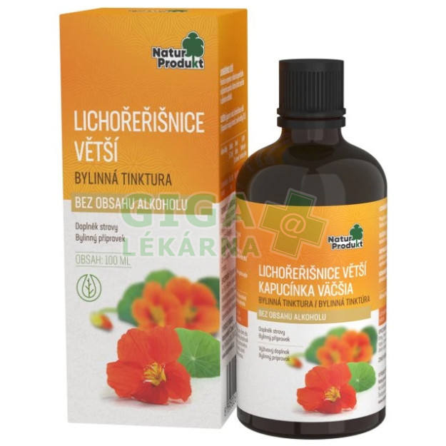 Používá se zejména v oblasti urogenitálního a dýchacího traktu. Možné užívat souběžně s užíváním antibiotik. Dávkování Naturprodukt lichořeřišnice kapky3krát denně 15-30 kapek. Kapky je možno přidat do studeného nápoje. Podávejte ještě 10 dalších dnů po vymizení příznaků. SloženíGlycerin, voda, extrakt z nadzemní části lichořeřišnice větší (Tropaeolum majus) 10:1.