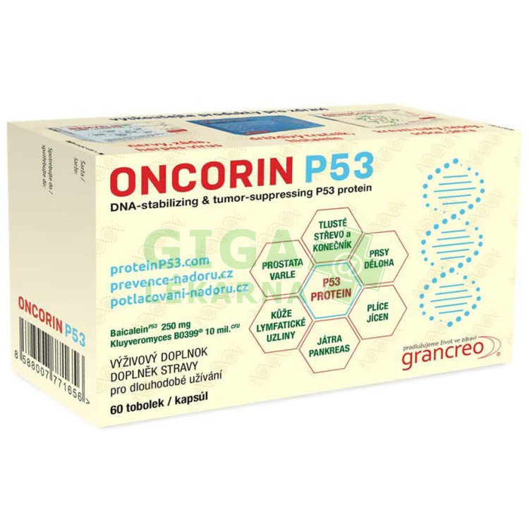 | Upozornění: | Přípravek ONCORIN P53 cps.60 je registrovaný jako doplněk stravy. Nemá schválené léčivé účinky a nejedná se o lék. Doplňky stravy nejsou určeny jako náhrada pestré stravy. Nepřekračujte doporučené dávkování. |