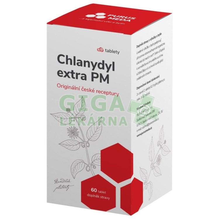 | Upozornění: | Přípravek Chlanydyl Extra PM 60 tablet je registrovaný jako doplněk stravy. Nemá schválené léčivé účinky a nejedná se o lék. Doplňky stravy nejsou určeny jako náhrada pestré stravy. Nepřekračujte doporučené dávkování. |