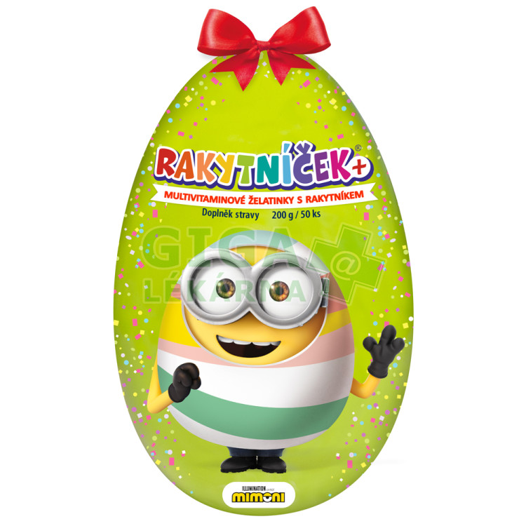 | Oficiální název: | RAKYTNÍČEK+ multivitaminové želatinky s rakytníkem Mimoni 50ks zelené vejce 2025 |