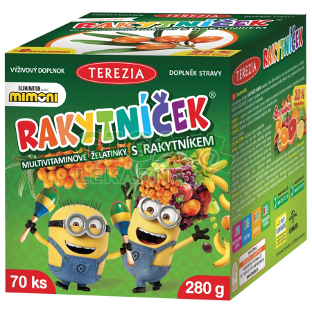 Multivitaminové ŽELATINKY RAKYTNÍČEK obsahují účinnou látku rakytník.
