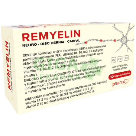 | Popis: | Popis Remyelin 30 kapslíRemyelin je doplněk stravy ve formě kapslí. Přípravek kombinuje kombinaci uridinu, palmitoyletanolamidu, vitamínů skupiny B, vitaminu C a biologicky aktivní kyseliny listové. Je vhodný pro lidi s neuropatickou bolestí zad, zápěstí, nohou anebo diabetiky. Výhody produktu