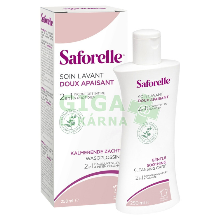 ![]() ![]() ![]() ![]() ![]() Saforelle® jemný gel pro intimní hygienu - Jemná mycí péče Saforelle byla speciálně vyvinuta pro hygienu citlivé a podrážděné pokožky intimních partií i celého těla. Saforelle® obsahuje přírodní extrakt z Arctium Lappa, zmírňuje podráždění a dyskomfort v intimní oblasti. Díky jemnému složení bez obsahu mýdla, obohacenému o lipidy je ideální pro každodenní hygienu i při pocitu podráždění. Respektuje přirozenou rovnováhu intimního prostředí. Jak funguje![]() Saforelle® obsahuje přírodní extrakt z Arctium Lappa, zmírňuje podráždění a dyskomfort v intimní oblasti. Respektuje přirozenou rovnováhu intimního prostředí. Testováno pod odborným gynekologickým a dermatologickým dohledem. Výhody