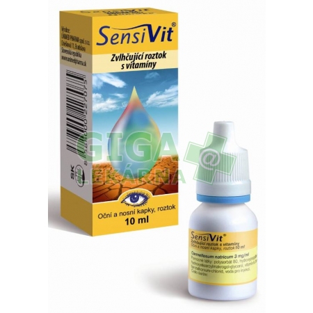 | Popis: | Popis Sensivit 10mlSENSIVIT® jsou oční kapky se zklidňujícím a zvlhčujícím účinkem. SENSIVIT® slouží ke stabilizaci všech tří vrstev slz (slzného filmu) na povrchu oka. Slouží jako náhrada slz. SENSIVIT® obsahuje sodnou sůl karmelózy, která vytváří na povrchu rohovky a spojivky dočasný ochranný film a zajišťuje požadovaný zvlhčující efekt. SENSIVIT® obsahuje dále vitamín A. Ten posiluje tvorbu vnitřní, hlenovité vrstvy slzného filmu. Spolu s vitamínem E zlepšuje výživu rohovky a spojivky. Látky obsažené v přípravku posilují též vnější (lipidovou) složku slzného filmu. Tenká vrstva slz na povrchu oka je tak unikátně posílena, případně nahrazena, ve všech třech svých vrstvách. SENSIVIT® tak působí proti rychlému osychání povrchu oka. Výrazně zlepšuje ochranný efekt slz. Bezprostředně po nakapání vede k úlevě od nepříjemných pocitů v očích. Indikační skupinaumělé slzy, oční roztok určený k zvlhčení oka PoužitíSENSIVIT® se používá k podpůrné léčbě při jakémkoliv defektu slzného filmu a k léčbě všech forem syndromu suchého oka. SENSIVIT® je možno použít u všech stavů, vyžadujících vytvoření nebo posílení ochranného vlhkého filmu na rohovce a spojivce oka. SENSIVIT® nepoužívatSENSIVIT® se nesmí používat při přecitlivělosti na účinnou látku, nebo na některou pomocnou látku přípravku. Přípravek se nesmí podávat těhotným ženám a kojícím matkám. SENSIVIT® není vhodný pro děti do dvou let věku. Nežádoucí účinkyPřípravek je velmi dobře snášen. Zřídkavě se bezprostředně po nakapání do oka může vyskytnout přechodné mírné pálení. Taktéž může dojít k alergické reakci. Případný výskyt těchto nežádoucích účinků nebo jiných neobvyklých reakcí hlaste svému lékaři. InterakceV případě současného používání jiných očních kapek je potřebné aplikovat SENSIVIT® jako poslední. A to minimálně 5 minut po předchozí aplikaci jiných očních kapek. Váš lékař by měl být informován o všech lécích, které v současnosti užíváte. Popřípadě které jste donedávna užívali anebo začnete užívat. To platí o jak lécích na lékařský předpis, tak i bez něho. Jestliže užíváte i jiné oční přípravky, poraďte se o vhodnosti jejich současného používání se svým očím lékařem. Dávkovaní a způsob podáváníJestliže lékař neurčí jinak, aplikuje se obyčejně do spojivkového vaku oka 1 kapka 1x až 3x denně. U dětí určí dávkování lékař individuálně. Přípravek mohou požívat dospělí, mladiství a děti od 2 let věku. UpozorněníTěsně po aplikaci přípravku do oka se může objevit neostré vidění. Nedoporučuje se proto 20 minut po aplikaci přípravku řídit motorové vozidlo, obsluhovat stroje nebo pracovat ve výšce. Současně s používáním přípravku nelze nosit měkké kontaktní čočky. Tvrdé kontaktní čočky mají být před nakapáním vyjmuty a mohou být znovu nasazeny za 20 minut po nakapání. Při předepsaném dávkování je předávkování prakticky vyloučené. Při náhodném požití přípravku dítětem je léčba symptomatická. Způsob nakládání se ZPPacient odšroubuje ochranný uzávěr, mírně zakloní hlavu a obrátí lahvičku dnem vzhůru. Stlačením plastové lahvičky vkápne do dolního spojivkového vaku oka předepsaný počet kapek. Při kapání se nesmí dotknout oka, řas ani kůže aby se zabránilo kontaminaci kapek. Po nakapání do oka je třeba uzávěr lahvičky opět pevně zašroubovat. Lahvička se uchovává ve svislé poloze. Složení Sensivit 10mlCarmellosum natricum (sodná sůl karmelózy) 3 mg v 1 ml roztoku VarováníPřípravek se nesmí používat po uplynutí doby použitelnosti vyznačené na obalu. Doba použitelnosti přípravku po prvním otevření lahvičky je 28 dní. UchováváníPřípravek uchovávejte při teplotě do 25oC. Chraňte před chladem a mrazem. Přípravek musí být uschováván mimo dosah dětí. Balení Sensivit10 ml |