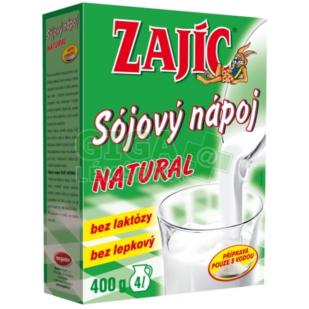 Z jednoho balení 400 g připravíte až 4 litry nápoje. Složení Sójový nápoj Zajíc naturalGlukózový sirup, sójová složka 30% (sójový olej, sójová bílkovina), stabilizátor fosforečnany draselné, kaseinát sodný, protispékavá látka oxid křemičitý, jedlá sůl, aroma, emulgátor E 481, antioxidant extrakt s vysokým obsahem tokoferolů, barvivo karoteny. Výživové hodnoty ve 100 g