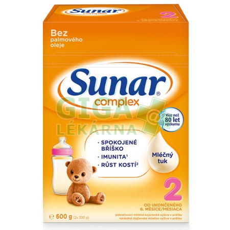 Sunar Complex je vyvinutý podle vzoru mateřského mléka a vychází z více než 80 let výzkumu. Unikátní receptura obsahuje exkluzivní kombinaci živin přirozeně se vyskytujících v mateřském mléce. Mléčný tuk dodává mléku lahodnou chuť, a proto je dětmi velmi dobře přijímán. Hlavní vlastnosti
