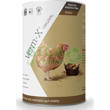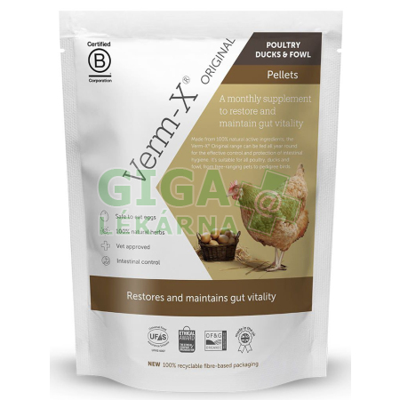 | Oficiální název: | Verm-X Přírodní pelety proti střevním parazitům pro drůbež 250g |