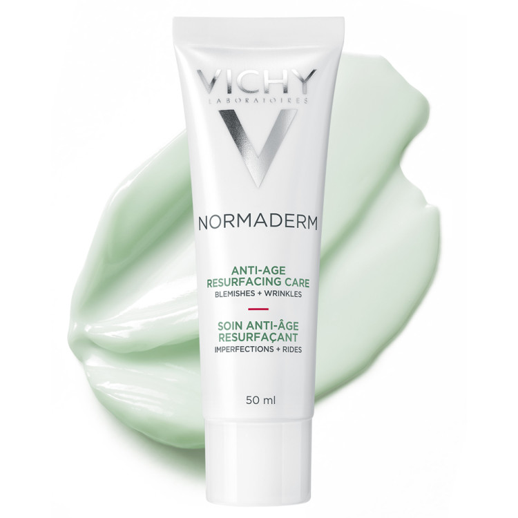 Svěží a nemastná textura. Vhodné pro citlivou pleť. IndikaceStálé nedokonalosti pleti a již první známky stárnutí: vrásky, rozšířené póry, nesjednocený vzhled. PoužitíKrém VICHY Normaderm ANTI-AGE aplikujte ráno a večer na čistou a suchou pleť vyčištěnou nejlépe VICHY NORMADERM PHYTOSOLUTION Čisticí gel.
