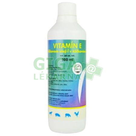 UžitíNapomáhá při léčbě nutriční encefalomalácie kuřic a krůt, svalové dystrofie kachen, kuřat a mláďat velkých hospodářských zvířat, exsudativní diatézy prasat a telat, hypovitaminózy E u nosnic vedoucí k brzké embryonální mortalitě, hypovitaminózy E u kohoutů projevující se následnou sterilitou, perózy (mangánové rachitídy) drůbeže. Způsob podáníPříslušná dávka vitamínu E v klíčkovém oleji se rozmíchá s podílem krmné dávky a podává se ke zkrmení. Dávkování Vitamin E v klíčkovém olejiTele 20-50 ml, jehně 5 ml, prasnice březí 20-50 ml, prasnice kojící 50-100 ml, odstavče 5 ml, pes a liška 2-10 ml, drůbež do 4 týdnů stáří 0,2-0,5 ml, drůbež nad 4 týdny 1-2 ml, holub 1 ml. SloženíTocoferoli alfa acetas – 0,3 %, Maydis oleum raffinatum, Alcohol benzylicus, Methylparabenum, Butylhydroxytoluenum. UpozorněníPřed použitím čtěte návod a podání přípravku konzultujte s veterinárním lékařem. Balení Vitamin E v klíčkovém oleji500 ml. |
