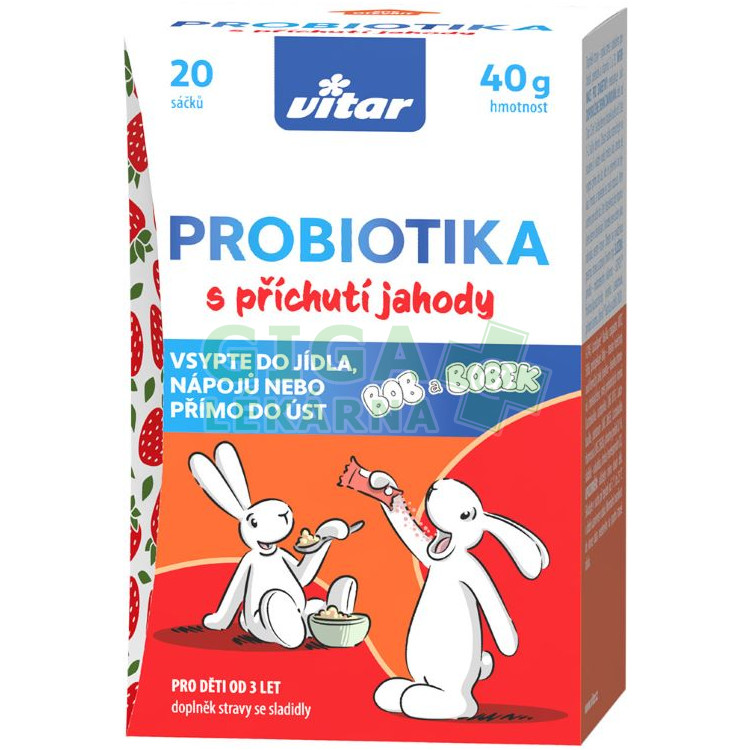 | Oficiální název: | Vitar Probiotika Bob a Bobek s př.jahody 20x2g |